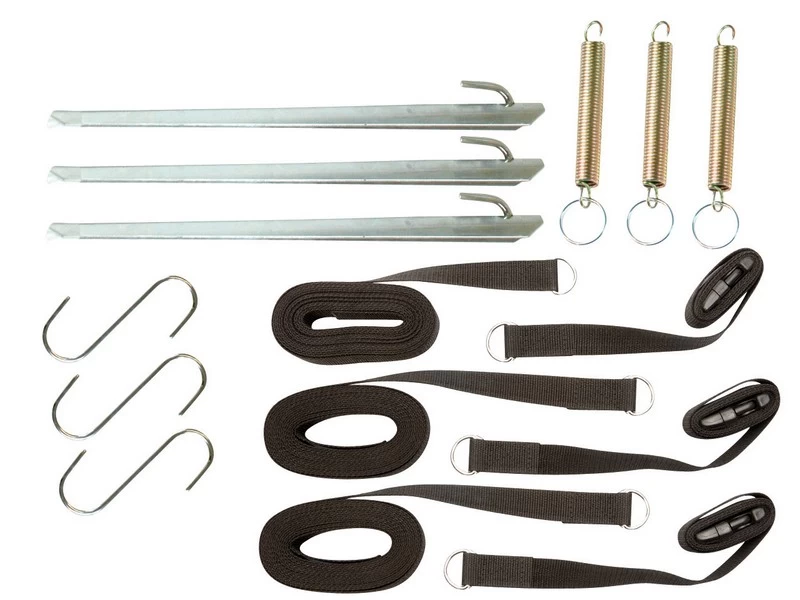 Set bestaande uit 3 stormbanden, 3 veren, 3 stormharingen, en 3 s-haken