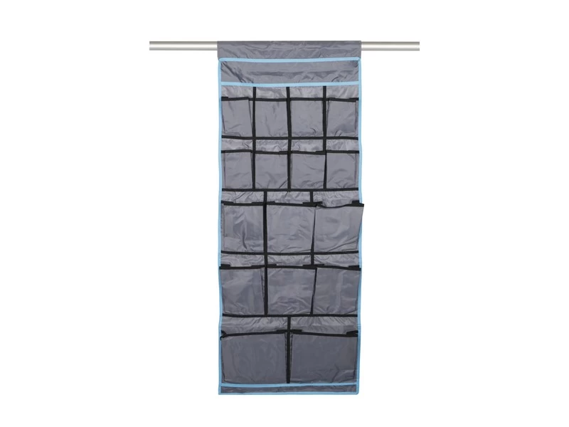 Een multifunctionele 16-vaks organizer. Beschikt over 2 ruime vakken, 6 medium vakken en 8 kleine vakken. Eenvoudig en op diverse manieren te bevestigen. Zo kan dit tentschort met de pees worden opgehangen aan een caravanrails, met het klittenband aan een tentstok of met de zeilogen aan haken. De lussen onderaan zorgen voor extra fixatie. Gemaakt van 420D nylon.