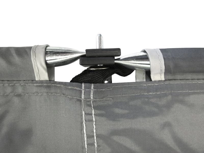 Een stabiel windscherm gemaakt van stevig polyester met gegalvaniseerde stalen stokken.