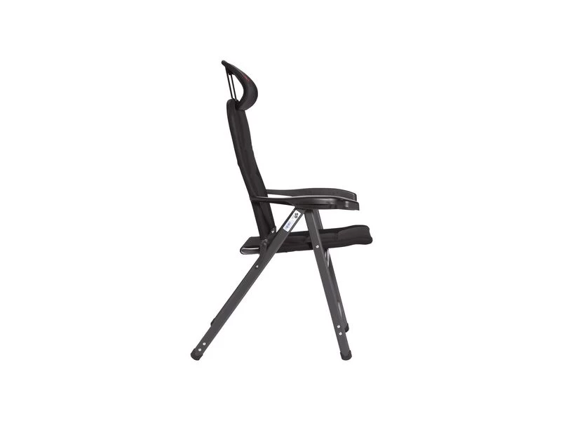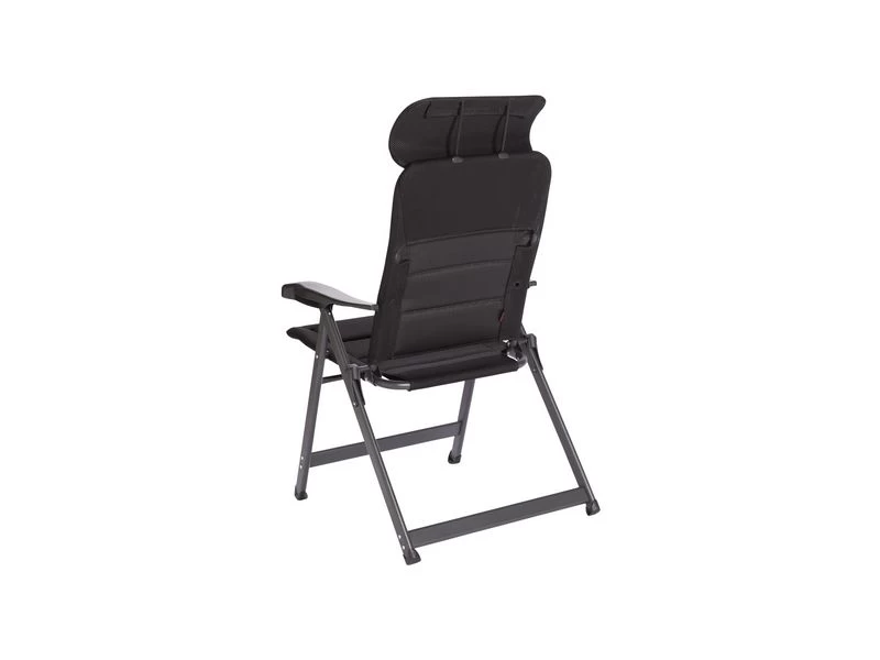 Een zeer luxe compacte standenstoel. Deze stoel biedt maximaal comfort door de in 7 standen verstelbare rugleuning en een traploos verstelbare hoofdstuk. De comfortabele 3-D vulling van deze stof is extra luchtdoorlatend en houdt door de open celstructuur geen vocht vast. Hierdoor is de stoel veel sneller droog dan stoelen met een traditionele schuimvulling. Daarnaast zijn zowel de rugleuning , de zitting en de armleggers ergonomisch gevormd. De stoel is voorzien van een geanodiseerd H-frame voor extra stabiliteit en stevigheid. Ingeklapt is deze stoel zeer compact en daardoor gemakkelijk mee te nemen.
