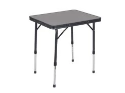 Een lichtgewicht en zeer stabiele tafel. Deze campingtafel is voorzien van een hittebestendig en watervast tafelblad en een aluminium frame met stijlvolle grijze poten. De tafel beschikt over traploos verstelbare poten (48-70 cm) die zijn in te klappen, hierdoor is deze tafel eenvoudig en compact te vervoeren.