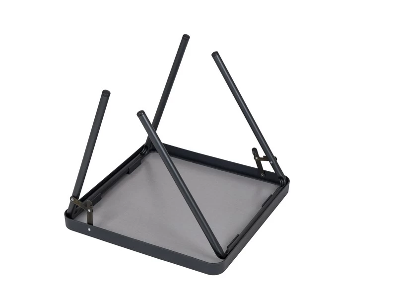 Een lichtgewicht en zeer stabiele vierkantte tafel. Deze campingtafel is voorzien van een hittebestendig en watervast tafelblad en een aluminium frame met stijlvolle grijze poten. De tafel is zeer geschikt als bijzettafel. De campingtafel is eenvoudig en compact te vervoeren.