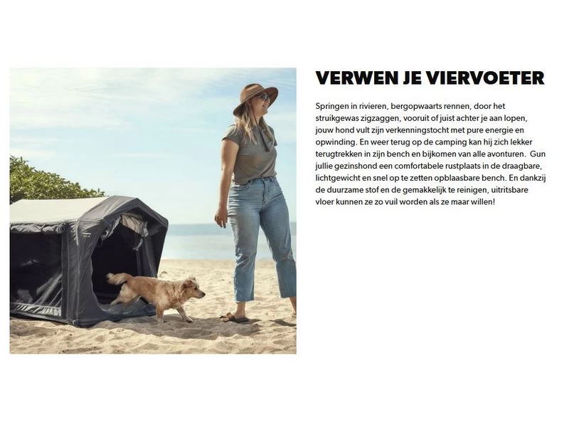 Perfect voor onderweg, voor dagtrips met de auto en vakanties in de buitenlucht. De Dometic K9 80 AIR is gemaakt van een lichte, duurzame stof die garant staat voor comfort en veiligheid voor jouw hond. Deze veelzijdige bench is makkelijk schoon te maken, compact in te pakken en heeft een draagbeugel, zodat je hem makkelijk mee kan nemen. Zo kan jouw hond (en/of ander dier) altijd mee op avontuur.