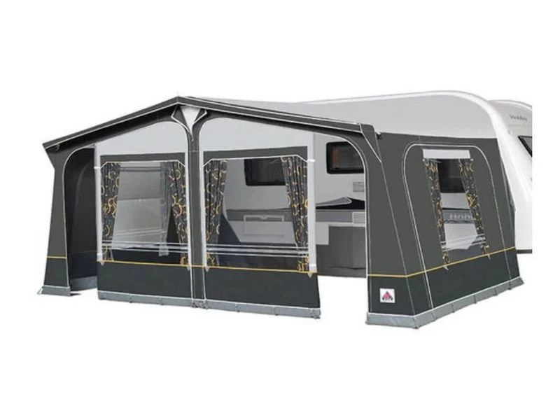 De Olympic 240 is een zeer voordelige voortent geheel gemaakt van het sterke Ten Cate All Season tentdoek. Dit materiaal heeft een zeer lange levensduur en is eenvoudig te reinigen. Alle wanden zijn uitritsbaar en van de voorwand is een veranda te maken.