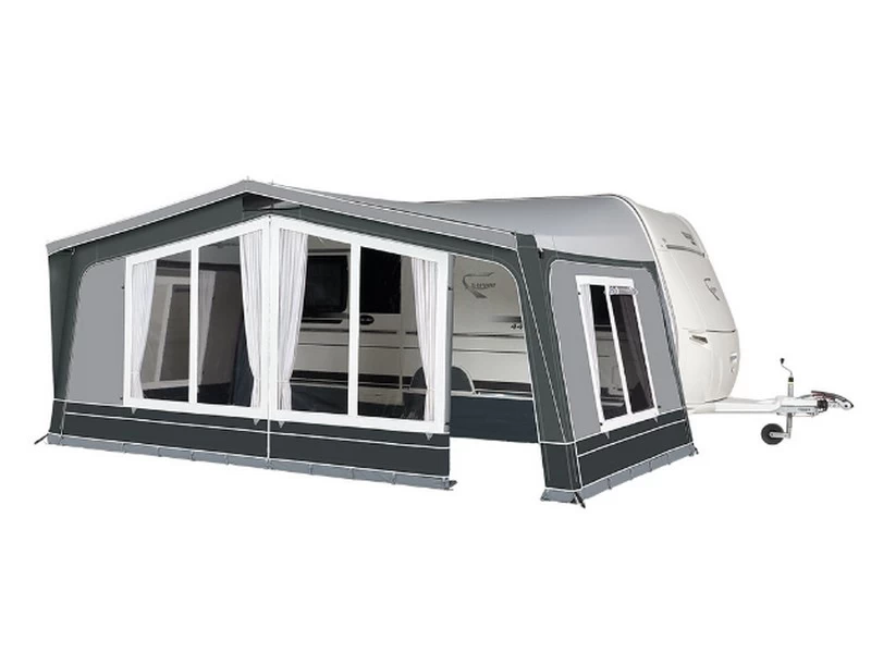De nieuwe Smaragd 270 is dé perfecte mix van top design en maximale functionaliteit. Door gebruik te maken van een nieuwe trendkleur in combinatie met strakke lijnen ontstaat er een geheel nieuwe look. Standaard voorzien van afneembare slikranden waardoor het schoonmaken en afbreken kinderspel wordt. Met een diepte van 270cm, extra hoge ramen en standaard grote ventilatievensters in de zijwanden, ervaart u extra kampeercomfort. Dit maakt de Smaragd 270 zeer geschikt voor zowel de toer- als de seizoen kampeerder. Ook in de optionele uitbouw is de extra luxe en comfort doorgevoerd door de ruime afmeting (150cm x 250cm), een aparte ingang en een venster met afsluitbare ventilatie. Geniet van deze stijlvolle tent en droom weg in een onvergetelijke vakantie.