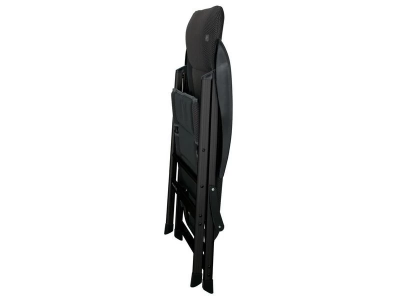Comfortabele camping stoel met hoge verstelbare rug. De stoel heeft een comfortabel gepolsterde air mesh materiaal en een stevig aluminium D frame. Rugpand is voorzien van ingebouwde hoofkussen en is 6x verstelbaar. De Kendal laat zich eenvoudig inklappen. Optioneel is er een voetenbank leverbaar.