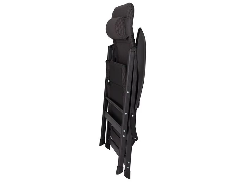 Comfortabele campingstoel met extra brede zitting en hoge rugleuning met kussen. Het versterkte aluminium D-frame biedt een maximale belasting tot 140 kg.! De stof is gemaakt van gepolsterd air mesh materiaal en biedt een perfect zitcomfort. De rugleuning is in 6 verschillende standen te verstellen en heeft een verstelbare hoofdsteun. Voetsteun is optioneel verkrijgbaar.