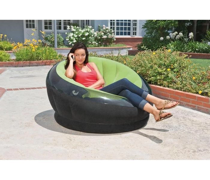 Fraaie opblaasbare stoel, extra comfortabel door betere ondersteuning van de onderrug met verstevigde bodem. Afmetingen: 109x112x69cm, kleur: groen.