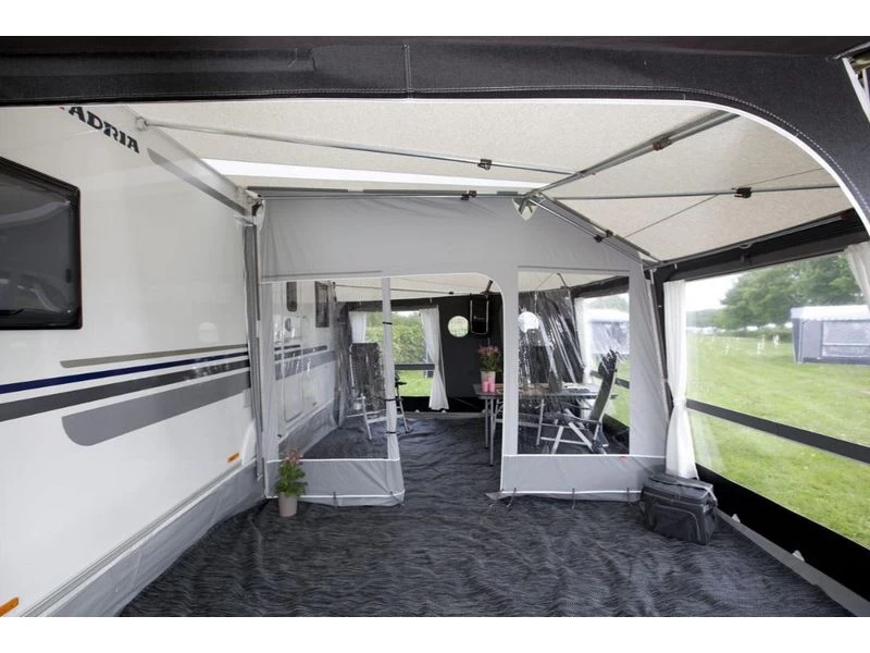 Maakt het mogelijk uw voortent op te delen in 2 afzonderlijke ruimtes. De scheidingswand is gemaakt van gecoat polyester en met venster.
