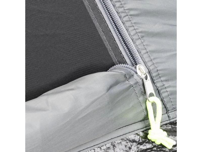 Gaaspanelen met ritssluiting zitten achter de rechterdeur en zorgen voor extra comfort bij warm weer